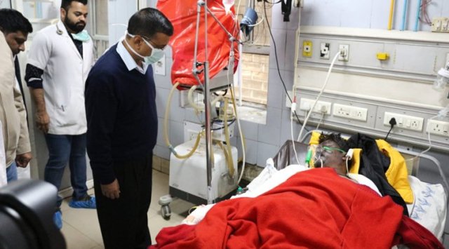 Chief Minister Kejriwal, Health Minister Satyendar Jain visit the injured. PTI