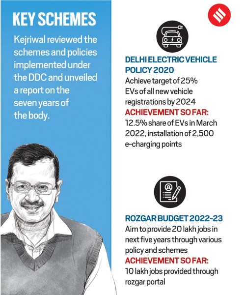 Lauding the DDC and giving credit to Shah, Kejriwal talked about the EV Policy, doorstep delivery, CCTV, streetlights, health information management system, providing 10 lakh jobs through the Rozgaar portal, among others.