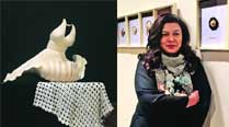 An iconic Marilyn Monroe photograph finds a new twist in the form of a sculpture of her white dress billowing in the wind, albeit without her body, placed on a bed of areolas. On a similar bed in another sculpture titled She Shroud, lies a woman’s body draped with fiberglass sheet, questioning the mystery after death. The artist only puts forth questions, choosing not to answer any: “Does gender end with death? Does the soul have a gender?” Perhaps the rituals observed after death, mostly patriarchal and different for a man and a woman, only prove that this bias will continue to haunt forever.