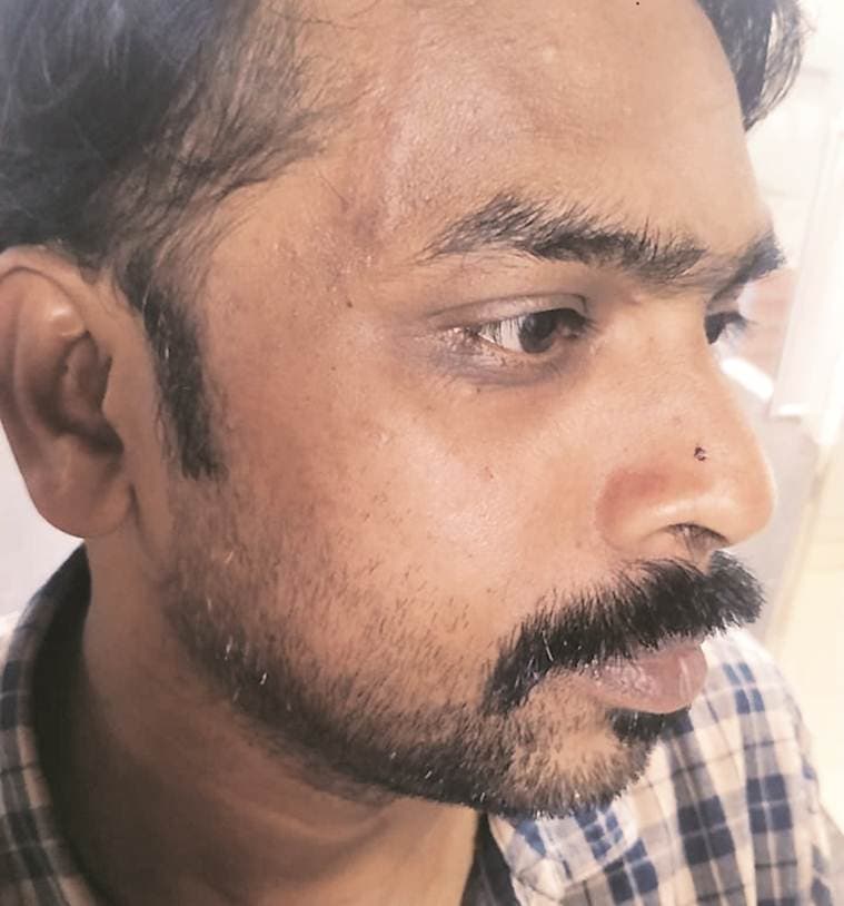“We were at the barricades when the car was set ablaze. My cameraperson and I moved forward. Suddenly we were surrounded by police and one of them hit me with a lathi on the back of my head,” said Arunashankar, a reporter.
