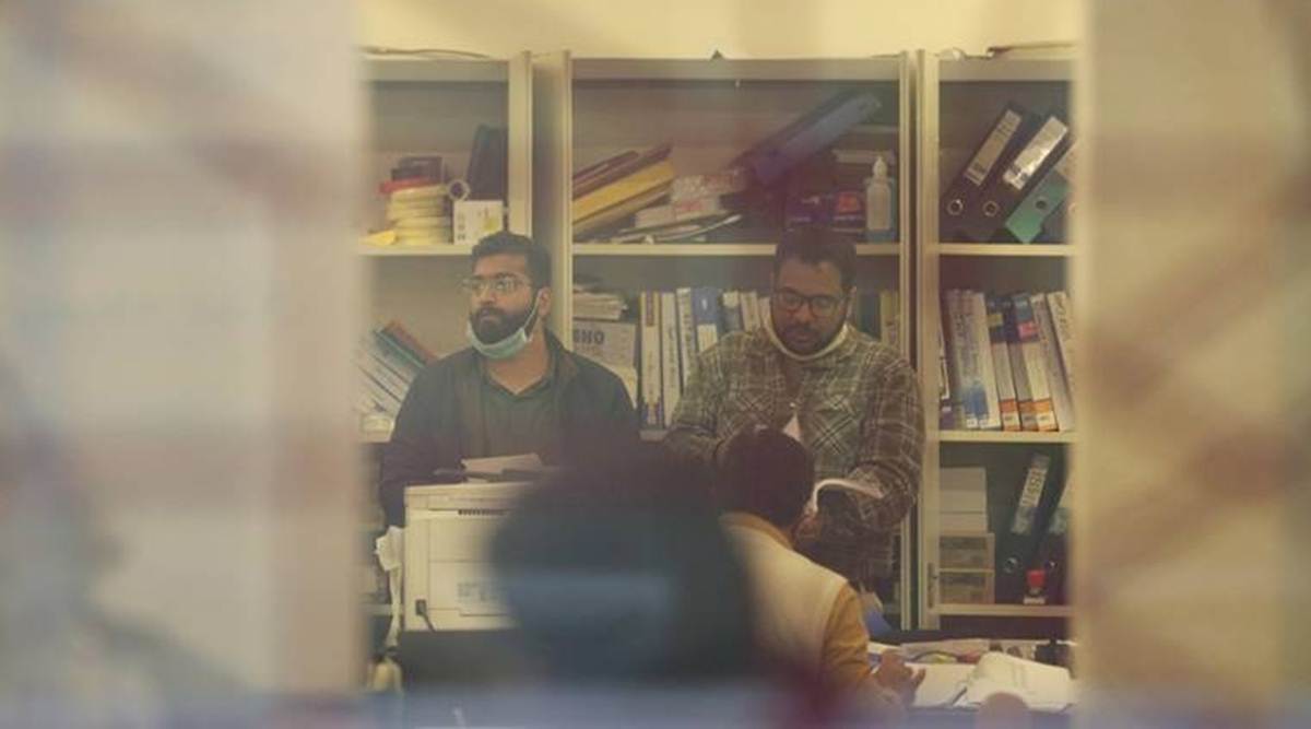 ED officials look through files at the office of Newsclick , during a raid in New Delhi. (Express Photo by Tashi Tobgyal/File)
