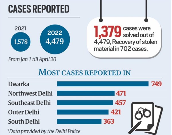 Data provided by the Delhi Police till April 20 this year shows that 4,479 cases have been reported as compared to 1,578 cases last year during the same time period.