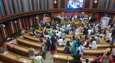 Things started smoothly enough on Wednesday morning, when the MCD house elected its new mayor, AAP’s Shelly Oberoi. She won the election, which was held during the MCD House meeting, with 150 votes, against 116 for BJP’s Rekha Gupta. After the results were declared, Oberoi took over from presiding officer, BJP’s Satya Sharma. AAP’s Aaley Mohammad Iqbal was elected as the Deputy Mayor, after he won with 147 votes, out of the total 266 votes cast. Two votes were declared invalid.