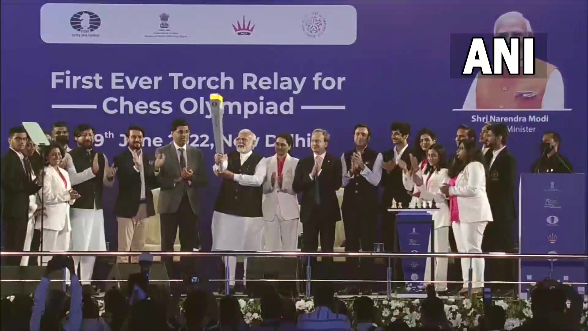 Prime Minister Narendra Modi on Sunday launched the torch relay for the 44th Chess Olympiad at Indira Gandhi Stadium in Delhi. Union Minister Anurag Thakur, Indian Chess Grandmaster Viswanathan Anand were also present.