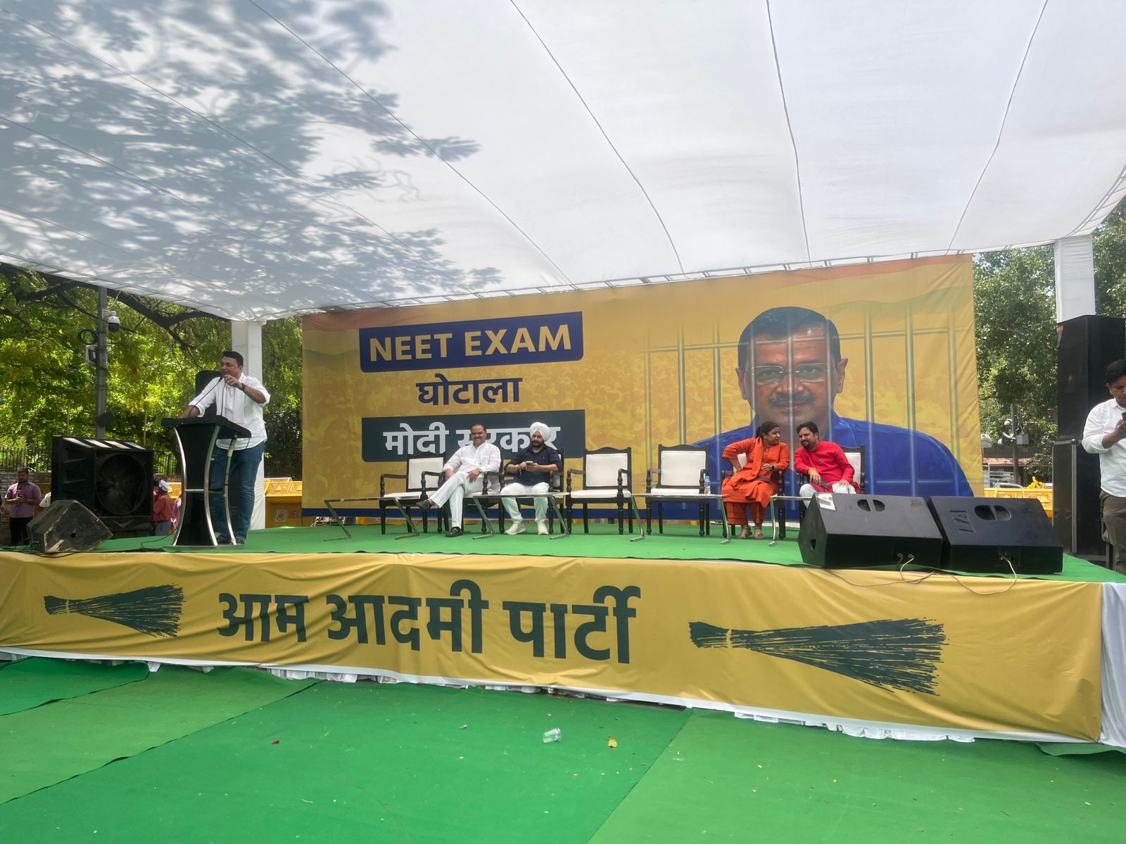 AAP MPs, MLAs hold protest against Centre's ongoing NEET exam controversy, urges govt to take strict action