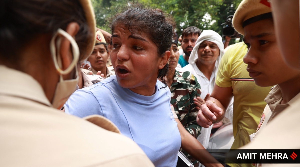 IN WHAT is being seen by protesting wrestlers as an attempt to bring the curtains down on their protest at Jantar Mantar, Delhi Police on Sunday detained Vinesh Phogat, Sakshi Malik and Bajrang Punia for violation of law and dismantled arrangements at the protest site.
