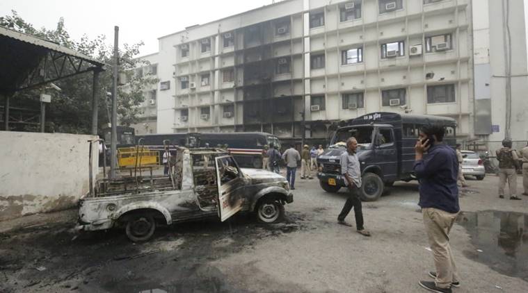 A scuffle broke out between Delhi Police and lawyers at Tis Hazari court on Saturday over a parking issue. As the argument turned ugly, a police vehicle was set ablaze at the premises. Lawyers alleged that two of their colleagues were injured, including one in police firing, but the police denied that it had opened fire. The two injured have been admitted to St. Stephens Hospital.