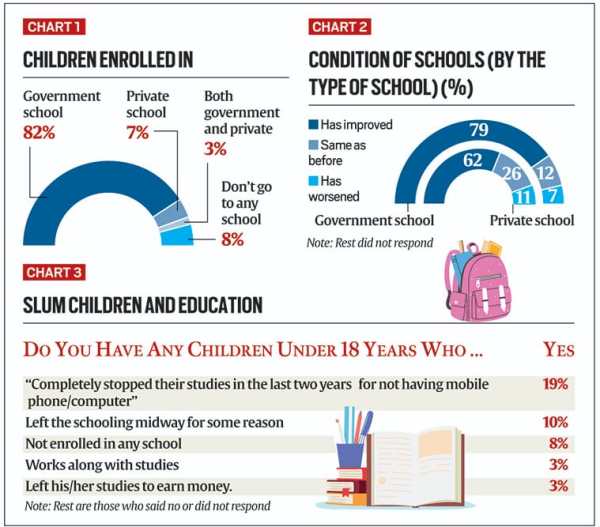 The study also found that the children enrolled in government schools are likely to get more facilities than those admitted in private schools. Nearly 65% households having a child in a Delhi government school reported that he or she was getting lunch and basic educational facilities like uniform, books and stationery. There can be low reporting of mid-day meal since when schools closed due to Covid, the scheme came to a halt. However, it has resumed since April 1.