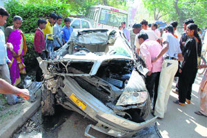 The total number of fatal accidents caused by commercial vehicles in 2009 was 408; the number came down to 389 this year. The figures with the traffic police indicate that Blueline buses caused 54 fatal accidents in 2009; the number has come down to 43 this year. DTC buses were responsible for 29 fatal accidents in 2009; and the number has come down to 18 this year. There is,however,an increase in fatal accidents caused by Heavy Transport Vehicles,with the number increasing from 117 last year to 126 this year.