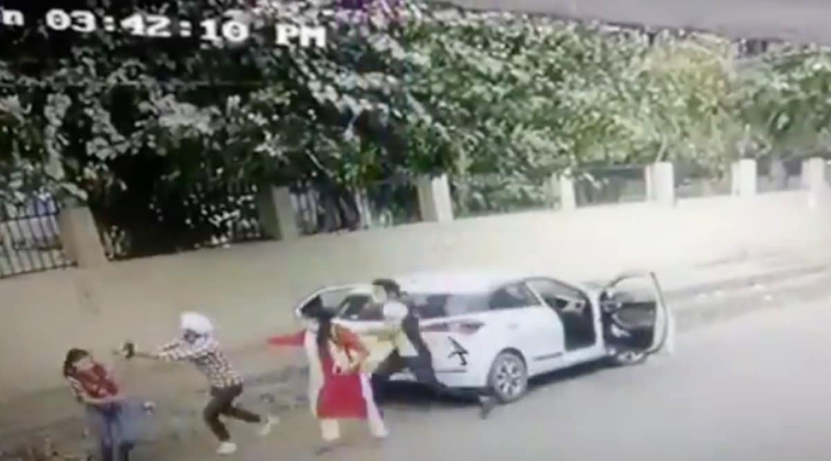 The woman had come out of her college after appearing for an exam, when the two men tried to drag her, into a white-colored car, at gunpoint. (Video screengrab)