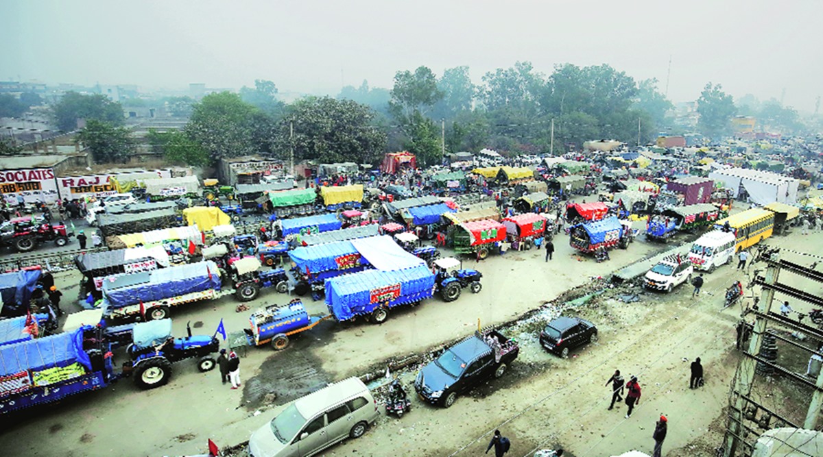 Tractors and trucks lined up at Singhu border which has become the focal point of the protests. (Photo by Praveen Khanna)