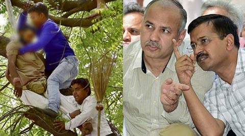 Gajendra Singh, climbed the tree, with a broom in hand, at around 1 pm and remained there for about half-an-hour even as the crowd standing below and the AAP leaders on the stage urged him to come down. The seriousness of the situation became clear when Singh tied a piece of cloth around his neck, wrapping the other end around a branch of the tree. It was another 25 minutes before he was brought down by AAP volunteers and rushed to hospital.