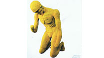 His head hangs low as he rests kneeling on his knees. Though crafted out of fiberglass and acrylic, he still conveys a feeling of surrender, of resignation to fate. This sculpture made by Goan artist Vaibhava Kitlekar rests on a wooden coffin and is called Vedic Handicap. Part of an exhibition titled “Balcao”, the piece is rich with interpretations from Goan history.