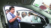 Gadkari was accompanied by Minister of State for Defence, Planning, Statistics and Programme Implementation Rao Inderjit Singh and Minister of State for Road Transport, Highways and Shipping Krishan Pal Gujjar.