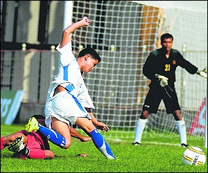 It took them only three minutes into the second half to break the deadlock as Tunde drilled a low cross into the net. Army Juniorss Luv Kush managed to break against the run of play on a couple of occasions,but without the support of his team mates,soon found himself outnumbered by the opposition defenders. Phoolchand Hembram doubled the lead for ONGC a minute before full-time to drive home the advantage.