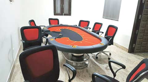 Three large Casino tables, stake money of Rs 43,500 and 2,968 gambling tokens worth crores were recovered. (Express Photo)