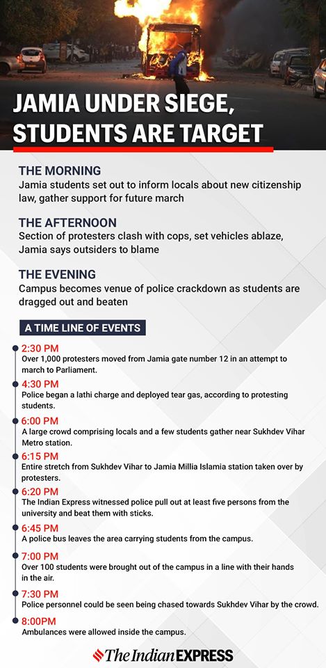 What turned into a riot-like situation near Jamia Millia Islamia by Sunday evening had begun as a ‘community march’ against the new citizenship law by students in the afternoon.