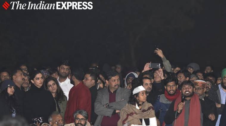 Deepika Padukone stands in solidarity with the students of JNU. (Express Photo: Tashi Tobgyal)