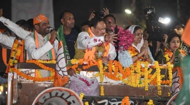 Nadda’s rally, part of the campaign for BJP candidates contesting from wards 168, 169 and 170, was held on Rathiya Marg in Sangam Vihar, a congested lane where traffic moved slowly all evening on account of the BJP workers who gathered for it. Cut-outs of Prime Minister Narendra Modi dotted the stretch strewn with the party’s flags.