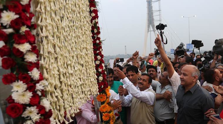 Delhi CM Arvind Kejriwal inaugurates Signature bridge on Sunday (Express photo)