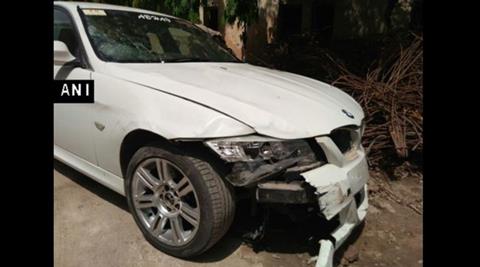 The BMW car which hit three persons leaving one dead in Noida Sector 24. (Express Photo)