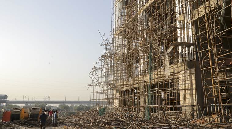 Four workers were killed and five injured after a section of the scaffolding collapsed at an under-construction multi-storey building in Noida’s Sector 94 Sunday morning. The incident took place at 10 am.