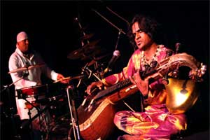 The book launch was followed by a Veena recital by Manet with percussionist Sivamani. The jugalbandi involved compositions based on Shiva as well as one dedicated to Manets mother,who passed away recently called A Happy End. As Sivamani,with his array of instruments ranging from the djembe,bazouki and taiko to bottled water cans,left the stage,the audience cheered him on even Bonnafont took his turn to rap some beats with him.