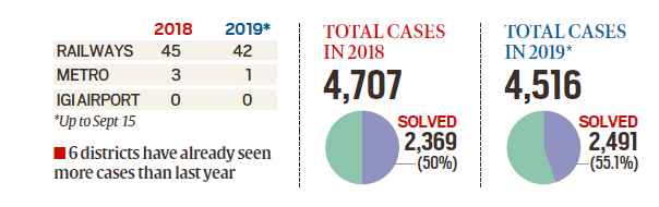 Delhi Police’s own data is testimony to the challenge they’re up against: Till September 15 this year, 4,516 cases of snatching, from phones to handbags to chains, were reported — an average of 530 cases a month. The figure for all 12 months of 2018 was 4,707 — roughly 390 cases a month. In six districts, cases reported with the police this year have already exceeded the number of FIRs filed last year.