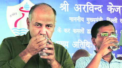 Kejriwal and Sisodia at the opening of Bawana water treatment plant. (Source: Express Photo by Gajendra Yadav)Expected to be a usual inauguration ceremony, the commissioning of the Bawana Water Treatment Plant on Tuesday afternoon witnessed high drama when Deputy Chief Minister Manish Sisodia’s address was interrupted by residents showing plastic bottles filled with “dirty water”. Also an actor in the show was BJP MP Udit Raj, who after arriving late, attacked the AAP government for allegedly disrespecting him and politicising the event.