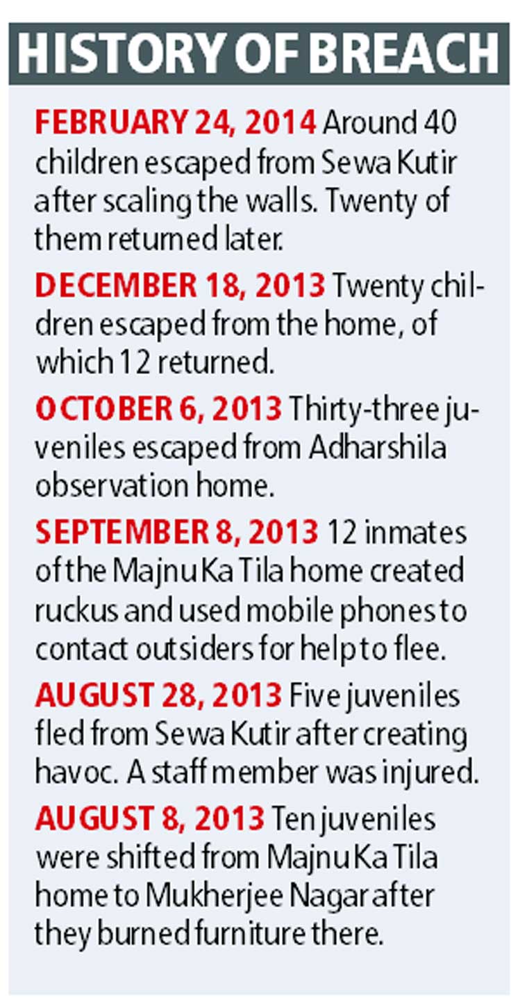 Five juveniles tried to escape from a juvenile home in Mukherjee Nagar by carving out a hole in one of the walls of the compound they were living in. Officials of the juvenile home said the five used an iron grill, which they pulled out from one of the windows, to break the wall. Their attempts, however, failed because they were caught by security guards deployed inside the home. The five juveniles were reportedly kept away from other inmates under the ‘segregation facility’ because of behavioural problems and “negative influence” in the past, authorities at the Sewa Kutir said. Around 3 pm on Sunday, staff posted outside the boys’ compound heard them singing aloud. They thought the boys must be playing. After a while, the boys started banging the iron grills, using them as instruments. Officials said when the singing continued for too long, the staff sensed something was wrong and went in to check. “They were singing aloud and banging the iron grills to suppress the noise that was being made while breaking the wall. They wanted to divert the attention of the security personnel. However, the staff members caught the juveniles red-handed and informed the authorities,” Superintendent Premoday Khakha said. Authorities said the juveniles had managed to break six inches of the wall, which is enough space for one person to escape. However, they got caught before they could make an attempt to run. However, authorities claimed that even if the boys had jumped out of the compound, they would have eventually been caught by guards deployed at another compound beyond it. “The other compound is also guarded by DGR guards and it would have been impossible for the juveniles to escape. They have been segregated from the rest of the children because they have a history of behavioural problems. Many of them have a history of addiction and they show withdrawal symptoms during which they turn violent. They are aggressive and try to influence other inmates. These boys get special attention, including extra counselling, as they require a different line of treatment. We have spoken to the boys and are trying to put hem at ease through counselling,” Khakha said.