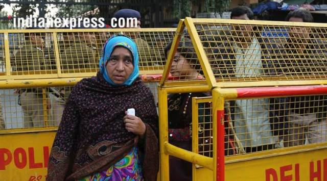 Najeeb’s mother with students islamic organisation protesting against HRD ministry. (Express Photo/Prem Nath Pandey)
