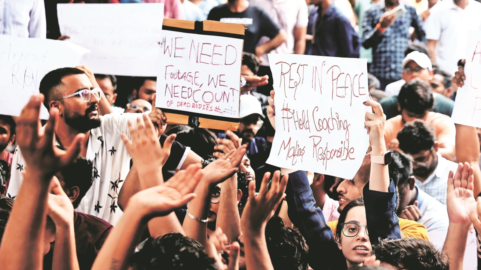 A day after three students — Tanya Soni, Shreya Yadav and Nivin Dalwin — died in a flooded basement of the Rau’s IAS Study Circle, other UPSC aspirants in the area got together to stage a protest on Sunday. “We pay (fees to centres) to risk our lives. Nobody from Rau’s has come forward to talk to us,” said a student.