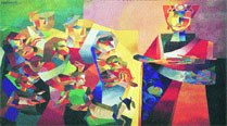 Monks in coloured robes with lotus flowers and auspicious banana trees depict hope — Niren Sen Gupta’s oeuvre gives prominence to symbolism. The former principal of Delhi College of Art is celebrating 40 years of his artistic career with a solo at Art Bull. “My works have been influenced by places, people, circumstances and my spiritual self and the exploration continues,” says the 74-year-old. Comprising 40 works, the exhibition traces his journey from his initial years, when he invoked motifs from the animal world, to canvases inspired by shringar and the Princess series that celebrated bright hues. In a series that borrows from the Ramakrishna Mission, Sengupta imbibes elements of spirituality. “It is a continuation of my basic value of spirituality of human relationships in their different avatars and vantage points,” says Sengupta. The exhibition is on at Art Bull Gallery, Lado Sarai, till October 10.