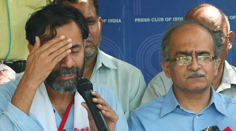 Former AAP leaders Yogendra Yadav and Prashant Bhushan, were expelled from the party owing to anti-party activities. (PTI photo)