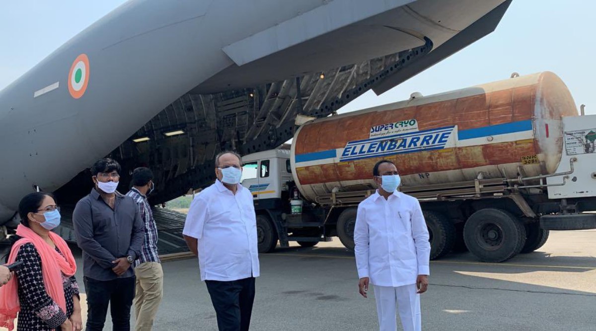 The Telangana government, with the help of Indian Air Force planes, airlifted nine empty oxygen tankers to Odisha plants on Friday to procure liquid oxygen for the state.