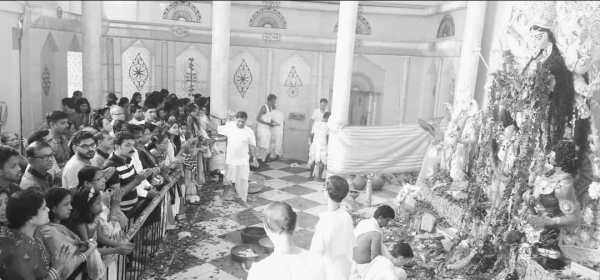 By the early twentieth century, the barowari puja had transformed into a more communal space because of its inclusiveness where it gave access to people regardless of social factors like age, gender, caste, class and religion. This new form of inclusive celebrations came to be called the sarbojanin puja.