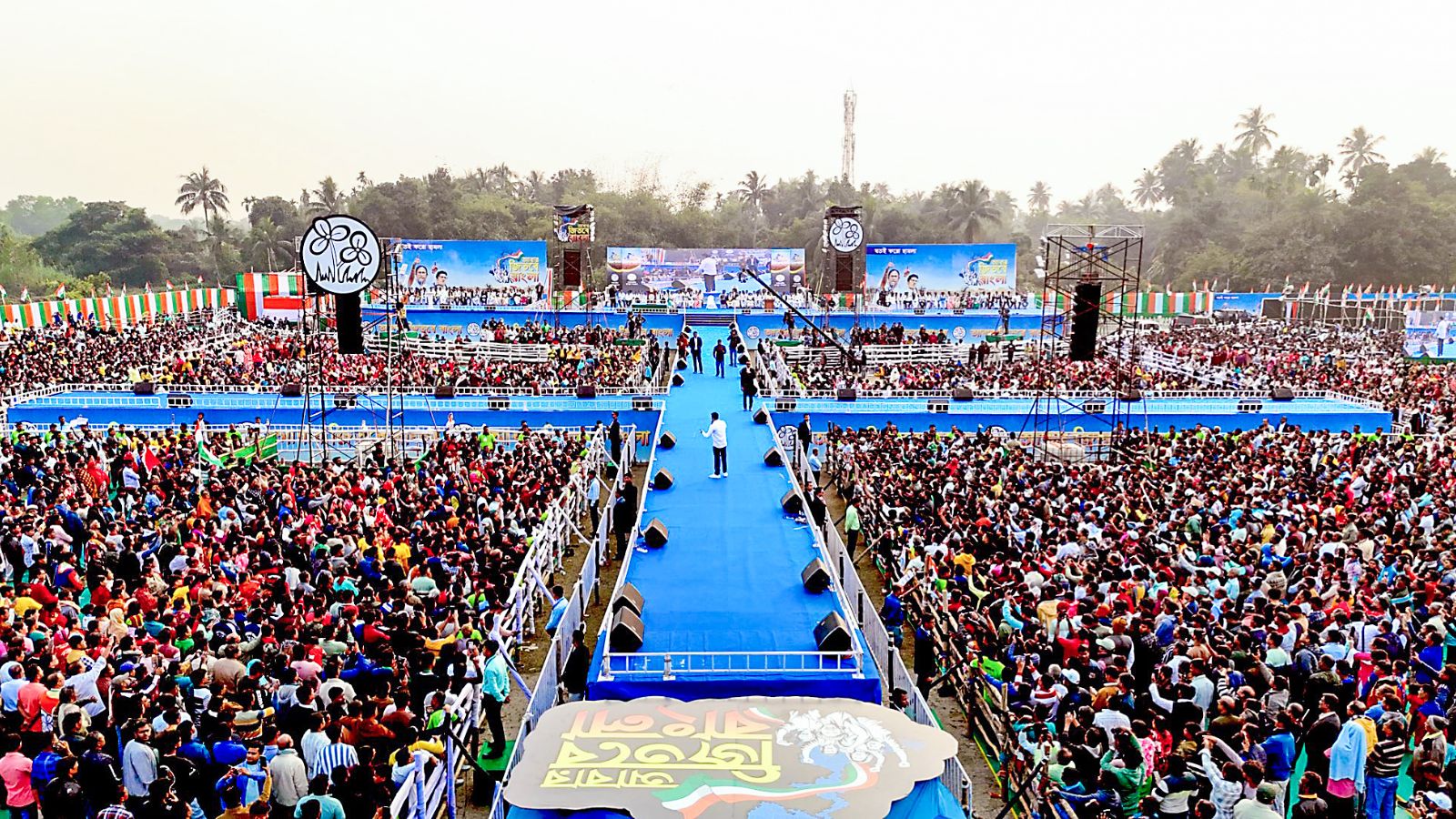 Addressing the rally in Baruipur, the 38-year-old MP, nephew of TMC supremo and Chief Minister Mamata Banerjee and seen as the party’s second-in-command, made three persons allegedly declared dead in the draft voter list walk the “ramp”, saying, “We may question why we got this ramp made. It was built to make these three ghosts walk. Have you ever seen the dead walk the ramp? They are flesh-and-blood citizens of Bengal, cruelly declared dead by the EC just because they dared to vote against the BJP’s anti-Bangla tyranny.”