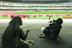 A day before the grand rally to be addressed by Mamata,thousands of Trinamool supporters from various remote districts are camping on the outskirts of Kolkata. A large number have also reached Kolkata and are putting up at various party camps,including the one at the Salt Lake stadium.