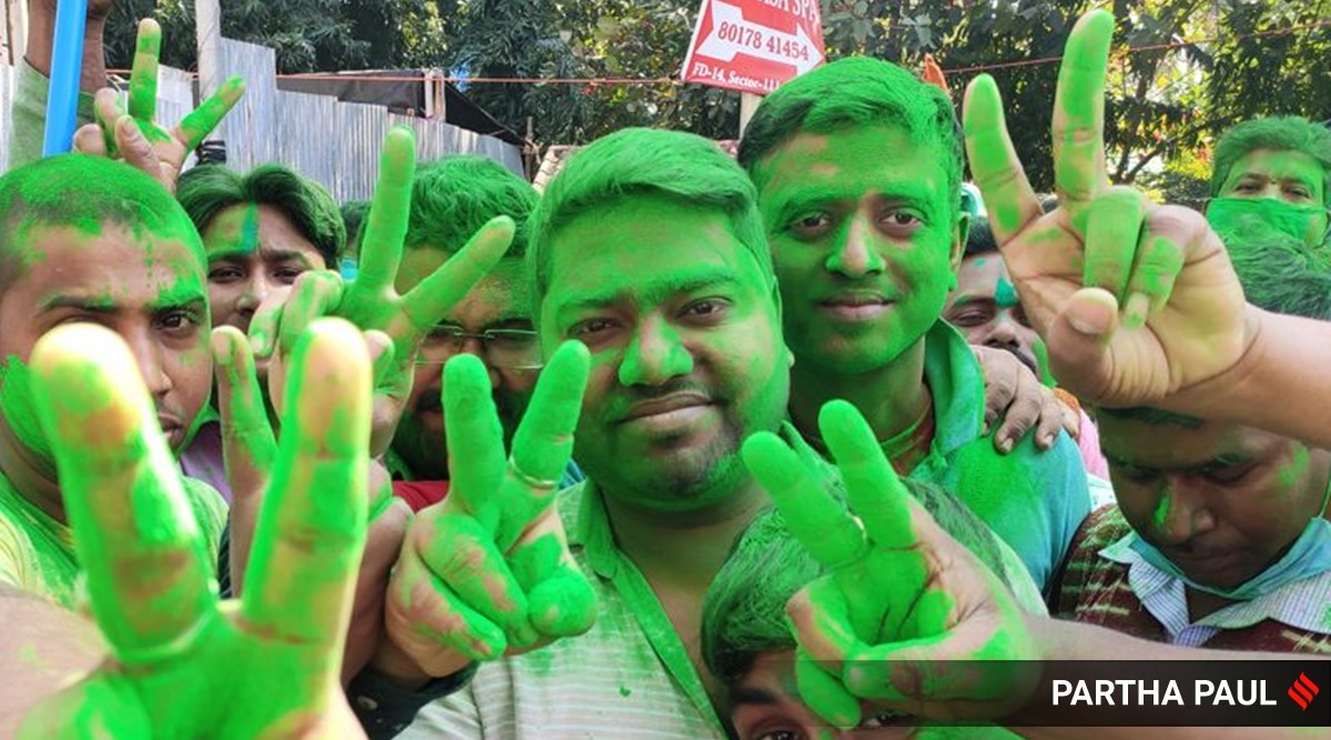 TMC supporters celebrate the party's win in Biddhannagar on Monday. (Express Photo: Partha Paul)The Trinamool Congress Monday made a clean sweep in the civic polls to four municipal corporations in West Bengal — Bidhannagar, Siliguri, Chandernagore and Asansol — as per data available on the State Election Commission’s website.