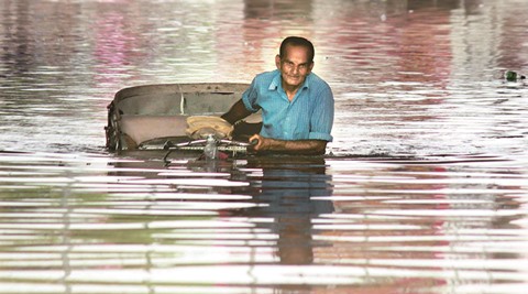 A rickshaw puller wades through a waterlogged underpass after heavy rains in Lucknow on Tuesday. Vishal SrivastavAs many as 13 persons, including nine minors, were killed due to lightning and wall collapse following heavy rainfall in several parts of Uttar Pradesh during last 24 hours.