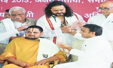 The occasion was a Brahmin Sammelan,held to coincide with Parashuram Jayanti. It was attended by Hindu religious leaders from Ayodhya and Mathura. SP chief Mulayam Singh was not there,but Chief Minister Akhilesh Yadav announced that all false cases lodged against Brahmins under the SC Atrocities Act by the former BSP regime will be withdrawn.