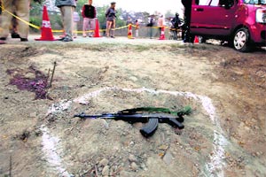 An AK 47 rifle,a .32 bore revolver and cartridges were recovered from the car.
