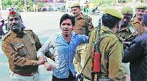 Police arrested three protesters, Mohit Mishra, Kamlesh Tiwari and Ganesh Singh, all residents of Naka area, for being part of unlawful assembly, deterring a public servant from performing his duty and unlawful restraint.