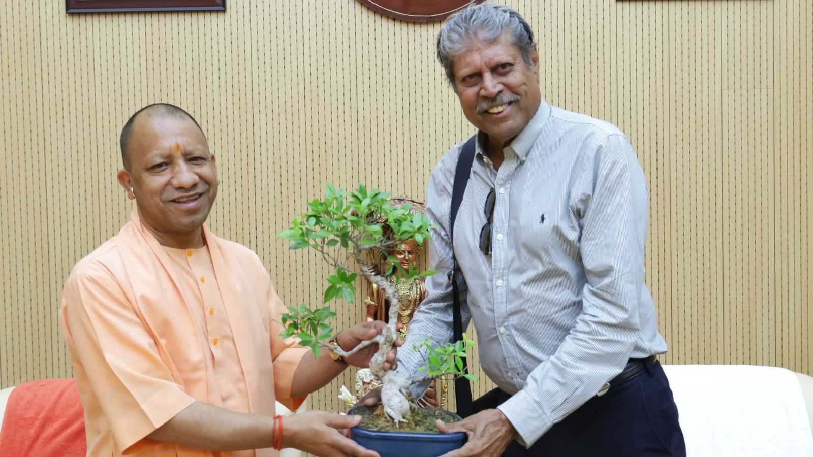 Former cricketer Kapil Dev with Chief Minister Yogi Adityanath in Lucknow on Friday (ANI)