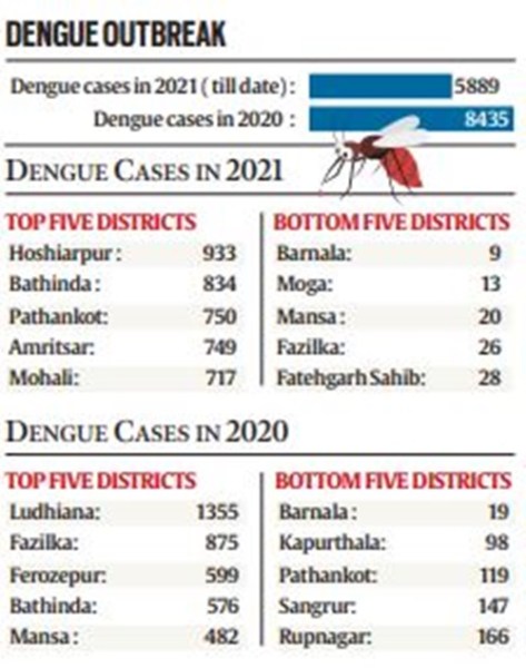 PUNJAB HAS so far reported 5,889 dengue cases this year with the maximum being recorded in the last around 6 weeks. Also, the state had conducted 18,500 ELISA tests to detect the vector borne disease in 2021.