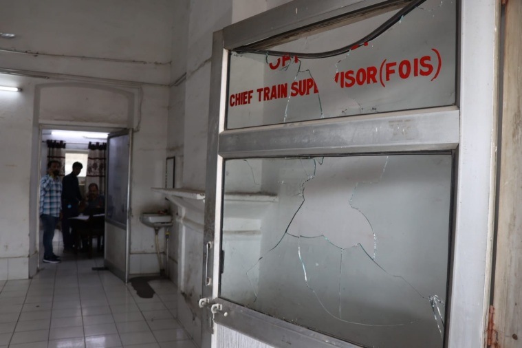 Police said that most of the protesters had their faces covered and carried sticks and iron rods. They stormed inside the railway station premises and vandalised glass window panes, ticket counters etc, said police.