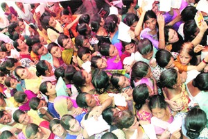 Huge chaos was seen at Punjabi Bhawan this morning as more than 1,500 applicants turned up to submit their forms for the compartment cases of classes X and XII. Although the students were given more than 10 days to submit the forms,the majority turned up today,the last date of taking the forms due to which the authorities were not able to handle the rush. Although they had kept 23 counters for taking the forms,the intense heat made the applicants out of control and they were seen pushing and pulling each other just to be at number one to submit their forms. Three students also fell unconscious because of the scorching heat. The authorities had got one tent erected in the open area but it was not sufficient to cater to the huge rush and even adequate drinking water was not available at the venue due to which the problem increased further. Pawandeep,a teenage girl,had fallen unconscious for A few minutes because of standing for hours together in the queue. Later,after taking rest and drinking plenty of fluids she was stated to be normal. Apart from the students,even parents were also standing in queues in equal numbers. Anil Sharma,manager at Punjabi Bhawan said,We had arranged for 22 counters and we took forms of all the students even after 5 pm as well. But the rush was unprecedented. We had made all possible arrangements but the applicants must also try to come earlier. The majority turned up on the last day only. The students,however,stated that the staff at work were too slow and did not realise the scorching heat outside. They demanded more arrangements of drinking water and tents in future at the venue so as to avoid any mishap.