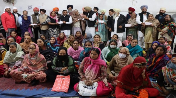 Kamaljit Karwal of Congress distributed cheques under ‘Punjab Nirmal Programme’ to women. (Express photo: Gurmeet Singh)