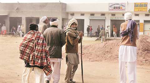 Queues outside vends selling poppy husk near the Doda Post on Punjab border , at a village in Rajasthan. Express photo by Gurmeet Singh