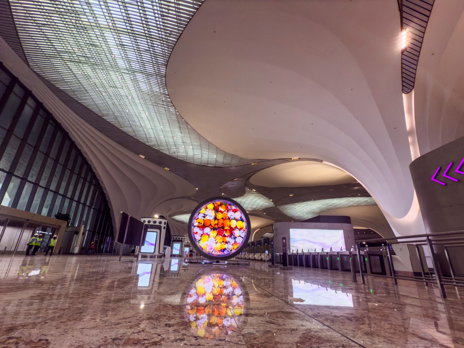 The airport will be dotted with immersive digital art installations. There are seven circular LED screens at the departure gates to welcome travellers. Besides them, there are two large interactive displays inside, and a giant installation — said to be among the world’s largest — just beyond the security check, all designed to create a ripple effect. In the coming months, the airport’s art programme will introduce more installations, including a fabric forest crafted from threads sourced from across Maharashtra, and an immersive digital experience right after security, intended to help soothe passenger stress before boarding.